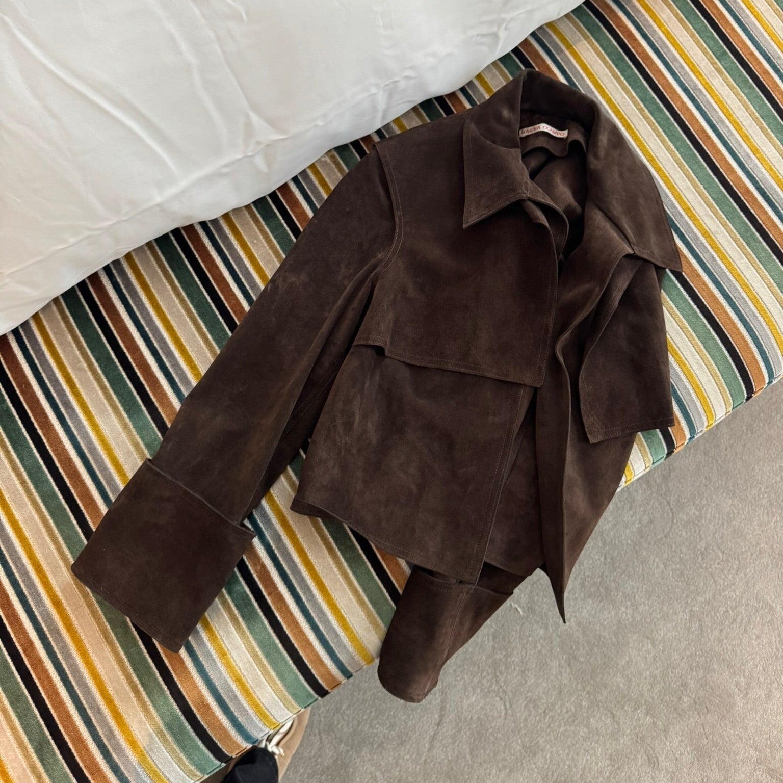 Please wear with care. Suede is a delicate material that can mark or stain easily. Avoid contact with water, oils, and direct sunlight. For cleaning, do not machine wash or hand wash — always take to a specialist leather and suede dry cleaner only.
